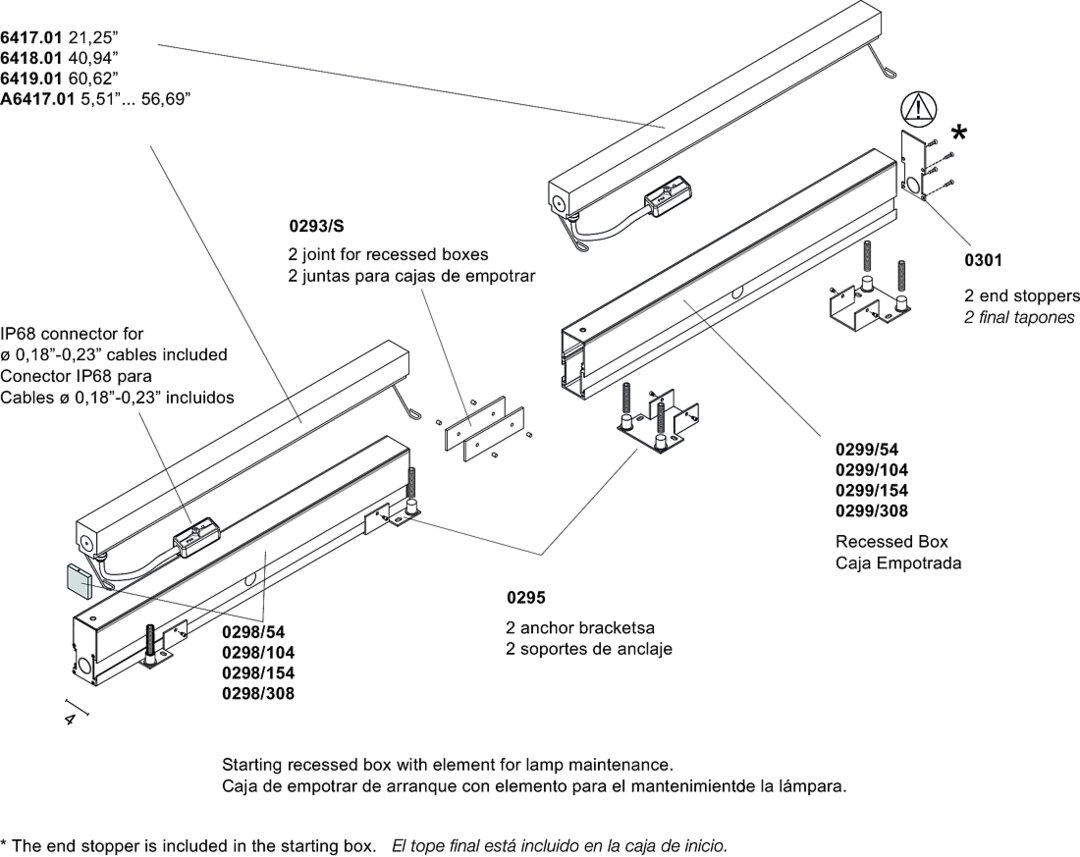 Linea luminosa LED calpestabile IP67 in metacrilato coestruso trasparente ed opalino. Casseforme modulari in alluminio anodizzato (anodizzazione rinforzata per esterni). Installazione a pavimento o parete con possibilità di comporre linee luminose continue.