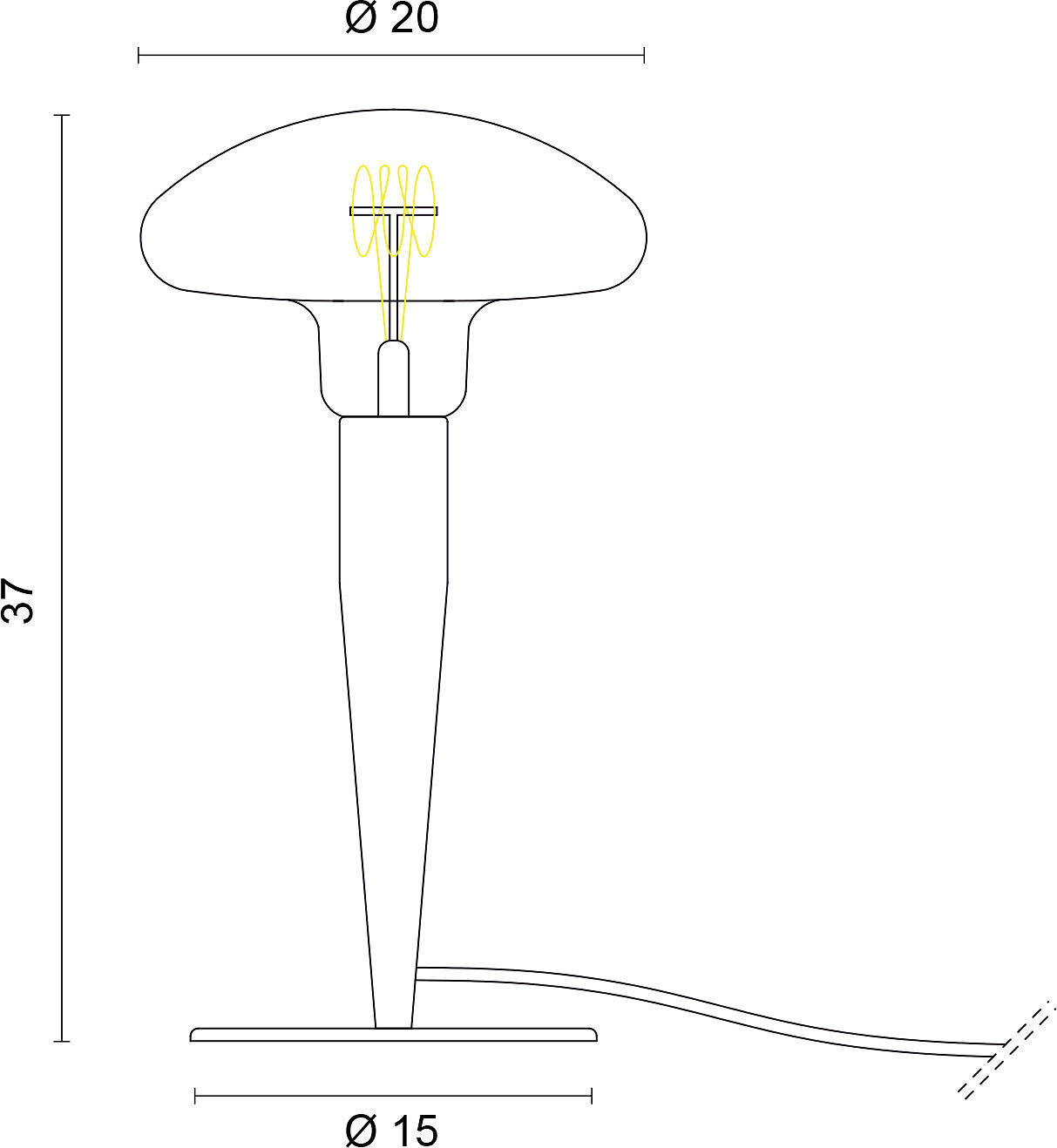 Tischleuchte mit Gestell aus rohem Eisen und LED-Glühbirne aus geblasenem Glas.