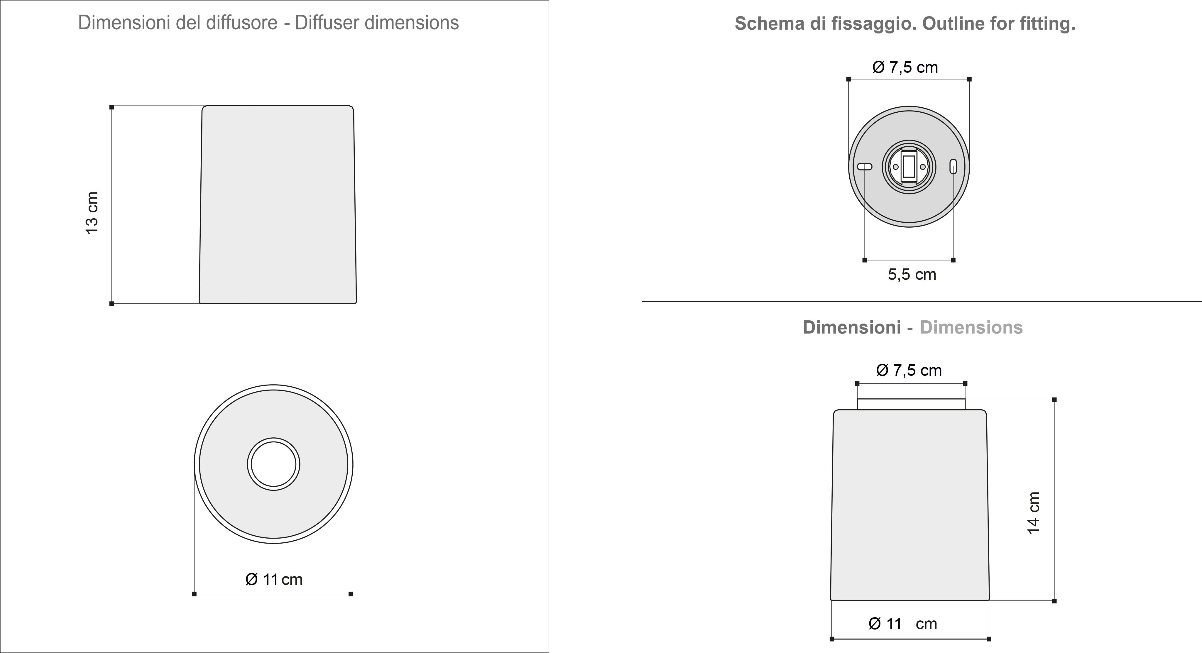 Das Design der Leuchte zeichnet sich durch das Volumen des Diffusors aus, einem kleinen Glaszylinder, der leuchtet, um das Licht zu streuen. Ein Design, das sich gut an jede Art von Umgebung anpasst, ob öffentlich oder privat, und an jeden Stil, ob klassisch oder modern.