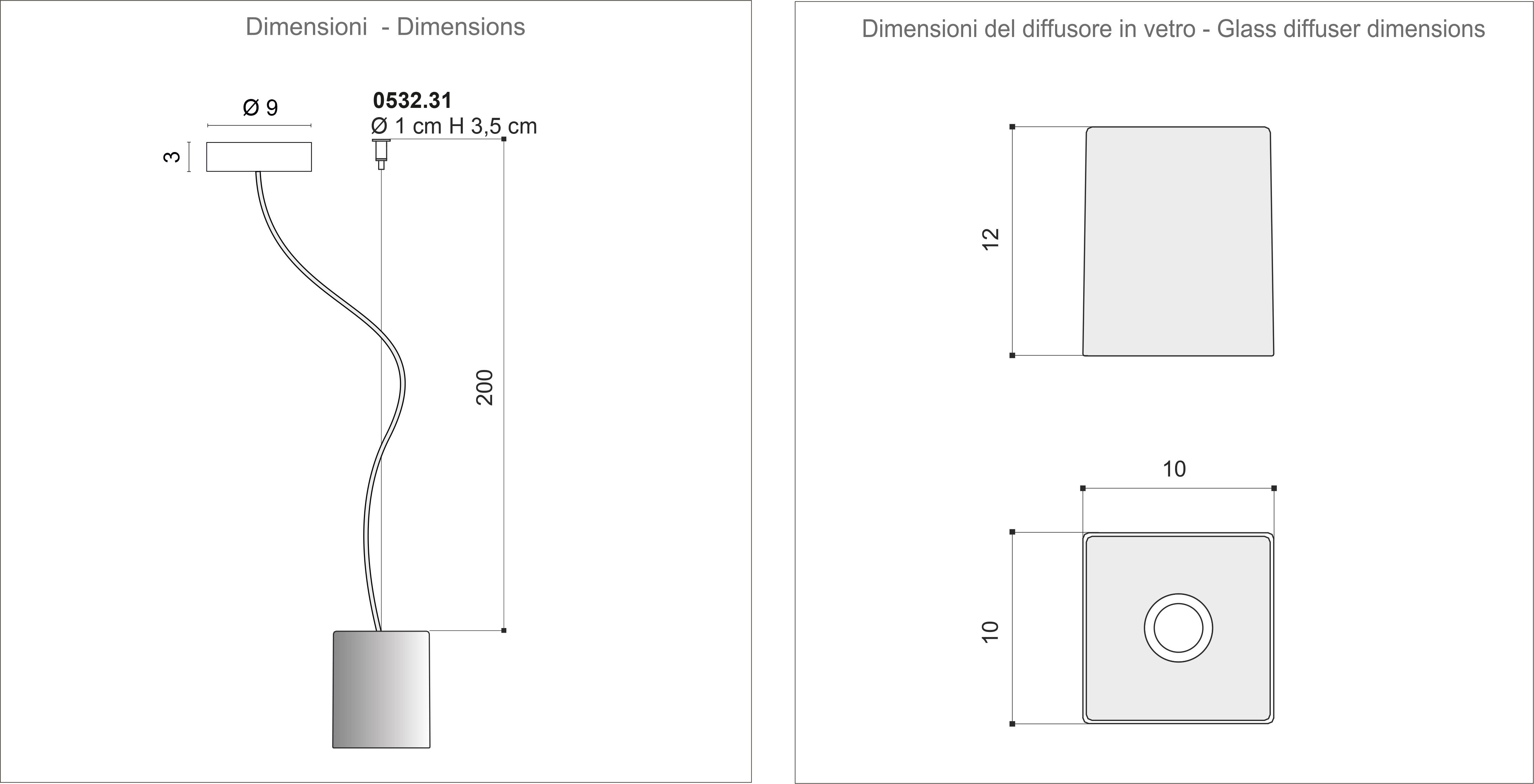 The design of the lamp is all about the volume of the diffuser, a small glass cube that lights up to diffuse light.