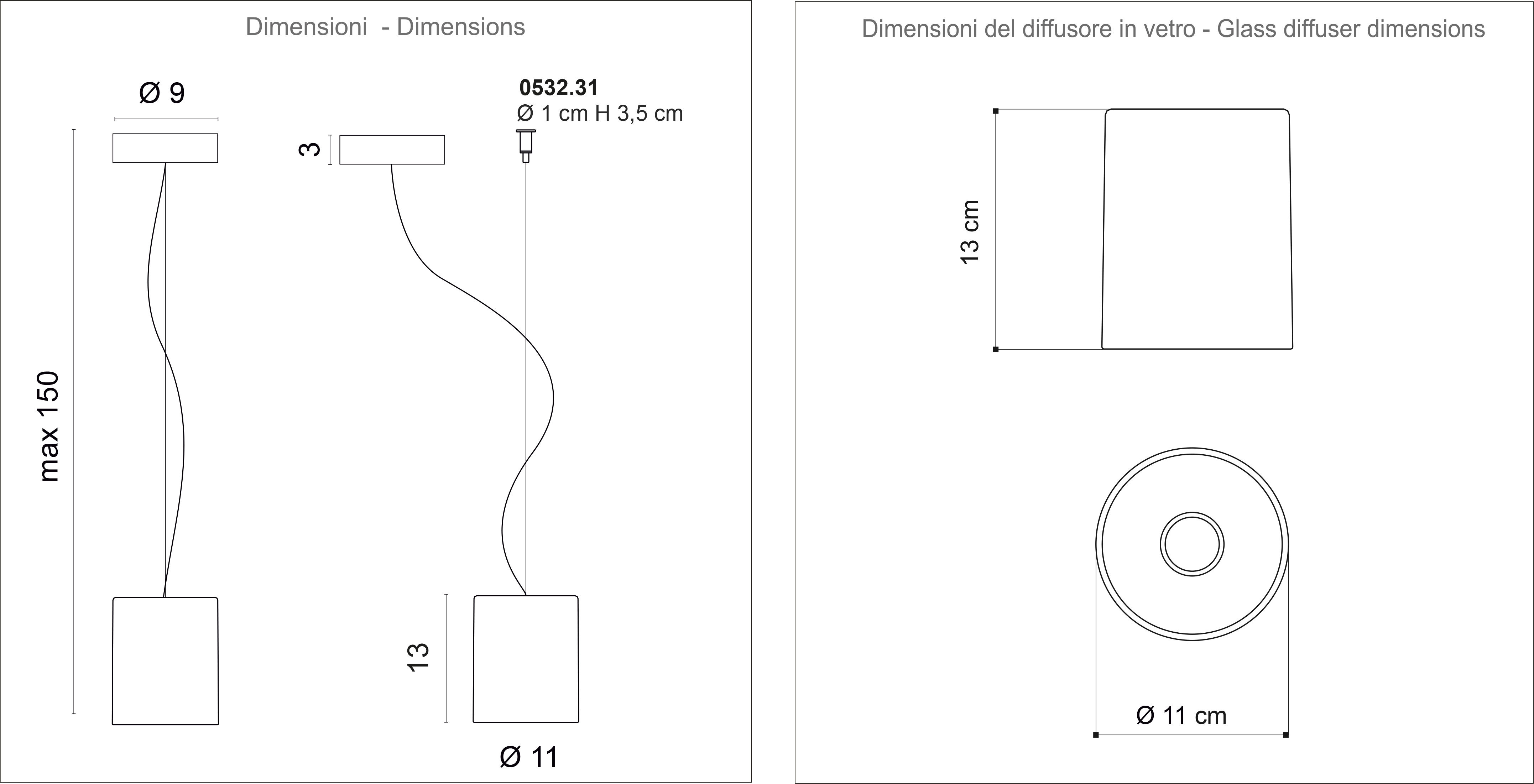 El diseño de la lámpara se caracteriza por el volumen del difusor, un pequeño cilindro de cristal que se ilumina para difundir la luz.