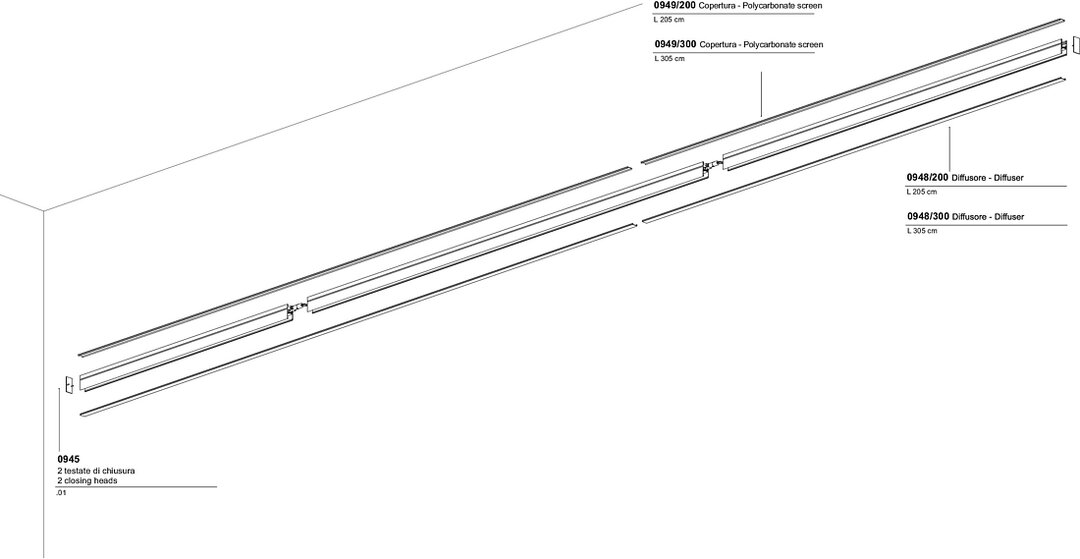 Système d'éclairage linéaire mural modulaire à lumière rasante, disponible en différentes longueurs, avec un corps en aluminium extrudé, dimensionné pour pouvoir contenir des alimentations et un circuit de 18W/m et 180 LED/m avec IRC>90. Le diffuseur en méthacrylate satiné, les embouts et les accessoires pour la composition sont à commander séparément. Rail System est une façon différente d'interpréter la lumière. Un système linéaire continu de LED qui, en même temps, devient un outil décoratif pour concevoir et redéfinir l'espace. La modularité des éléments et des accessoires permet de multiples configurations d'éclairage sans ombres ni interruptions.