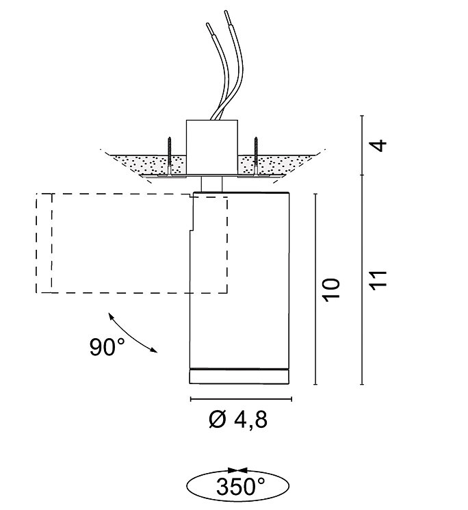 Lampe encastrée orientable à lumière diffuse avec corps en aluminium extrudé et diffuseur en polycarbonate opale.