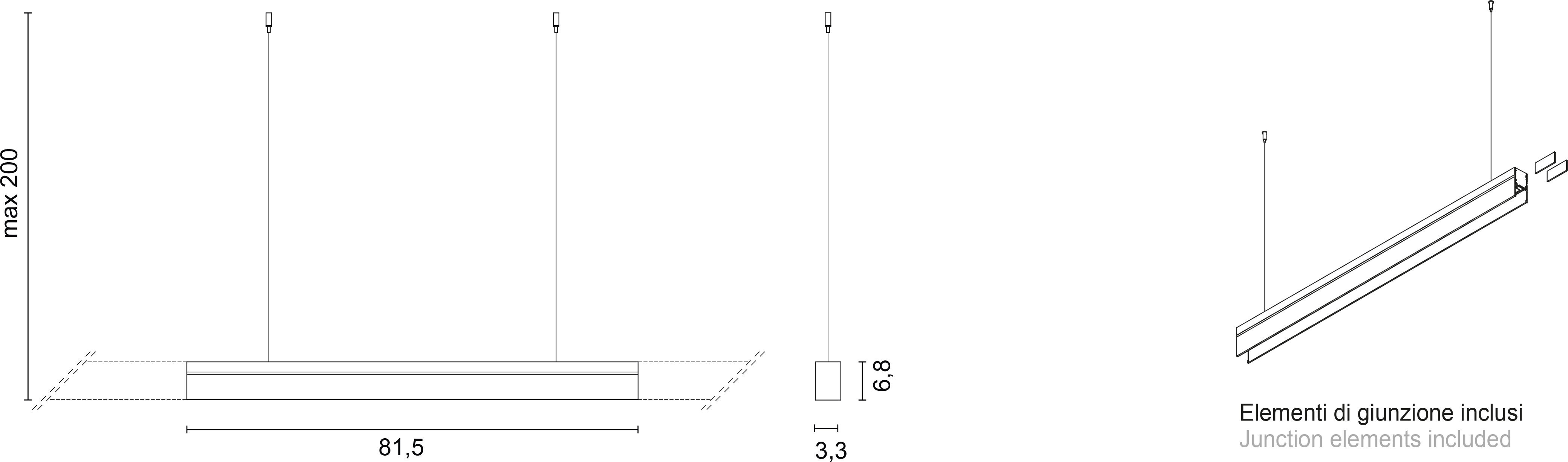 Rail System Suspension è realizzabile in differenti lunghezze modulari da 61,5 cm fino a 301,5 cm.