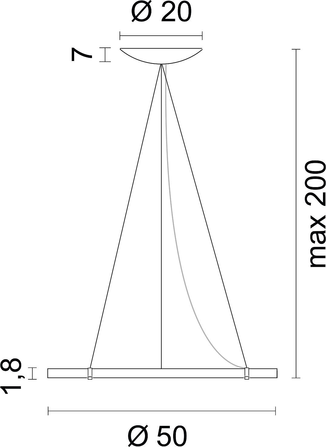 Lampada a sospensione a luce diffusa con corpo in trafila di alluminio calandrata, diffusore in policarbonato opale, circuito da 18W/mt e 180 LED/mt con CRI>90, cavo di alimentazione coassiale di 250 centimetri, completa di kit di fissaggio e rosone con driver integrato.