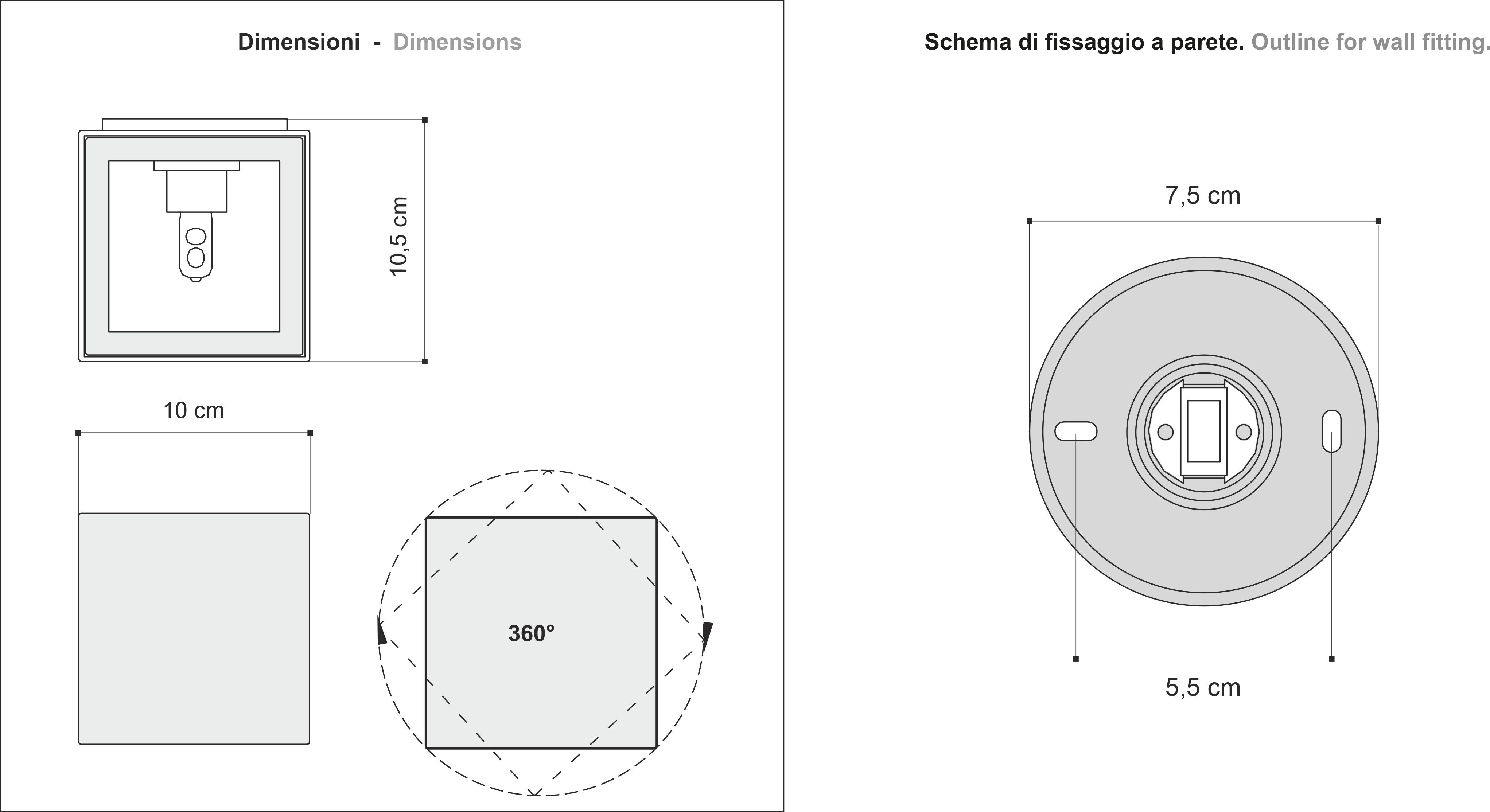 Lampada da parete orientabile a 360° a luce diretta e indiretta con corpo in alluminio e portalampada con attacco G9.