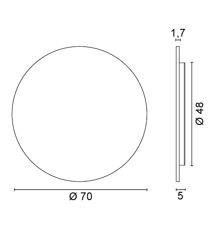 Lampada da parete e da plafone ad emissione radiale della luce, con frontale in MDF, struttura in alluminio, diffusore interno in policarbonato opalino e alimentatore integrato.