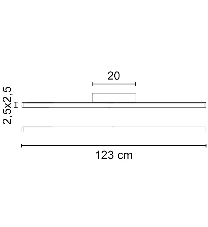 Lampada lineare da parete e da plafone a luce diffusa con corpo in alluminio verniciato bianco, diffusore in metacrilato satinato, driver integrato, testate di chiusura in ABS, cavo coassiale trasparente di 200 cm e circuito da 15W/mt e 180 LED/mt con CRI>90.