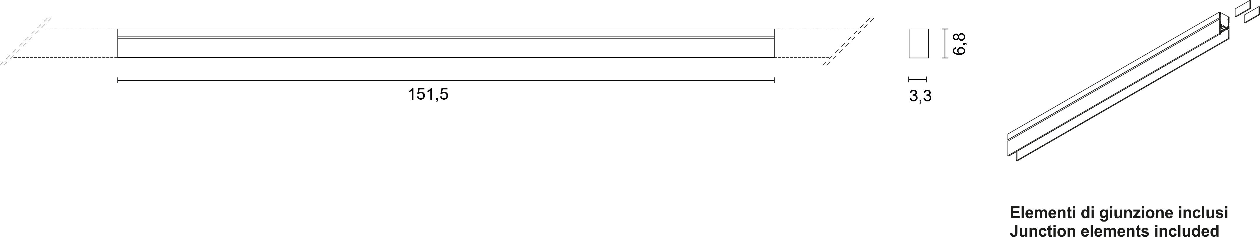 Rail System Ceiling Wall è proposta in differenti lunghezze modulari da 61,5 cm fino a 301,5 cm e su richiesta è disponibile con altre finiture e con alimentatori dimmerabili per un controllo 1...10V o DALI.
