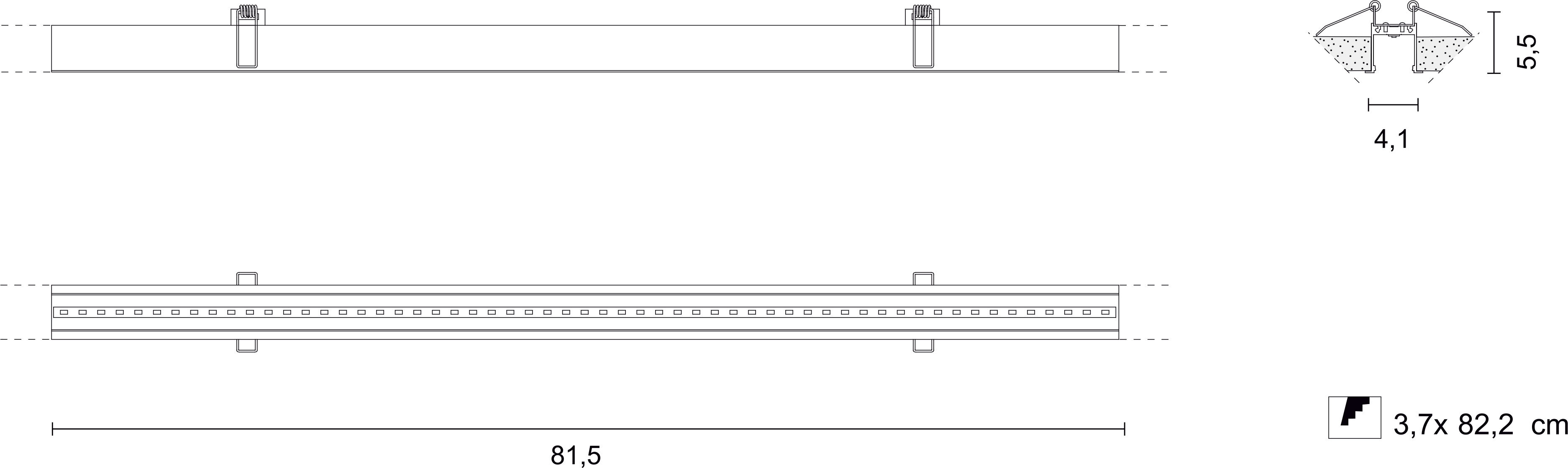 Sistema modulare di illuminazione lineare da incasso per pareti e soffitti in cartongesso a luce diretta, disponibile in varie lunghezze, con corpo in estruso di alluminio e circuito da 18W/m e 180 LED/m con CRI>90.