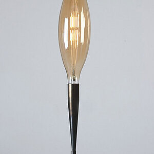 Напольный светильник с каркасом из необработанного железа и светодиодной лампой накаливания в выдувном стекле.