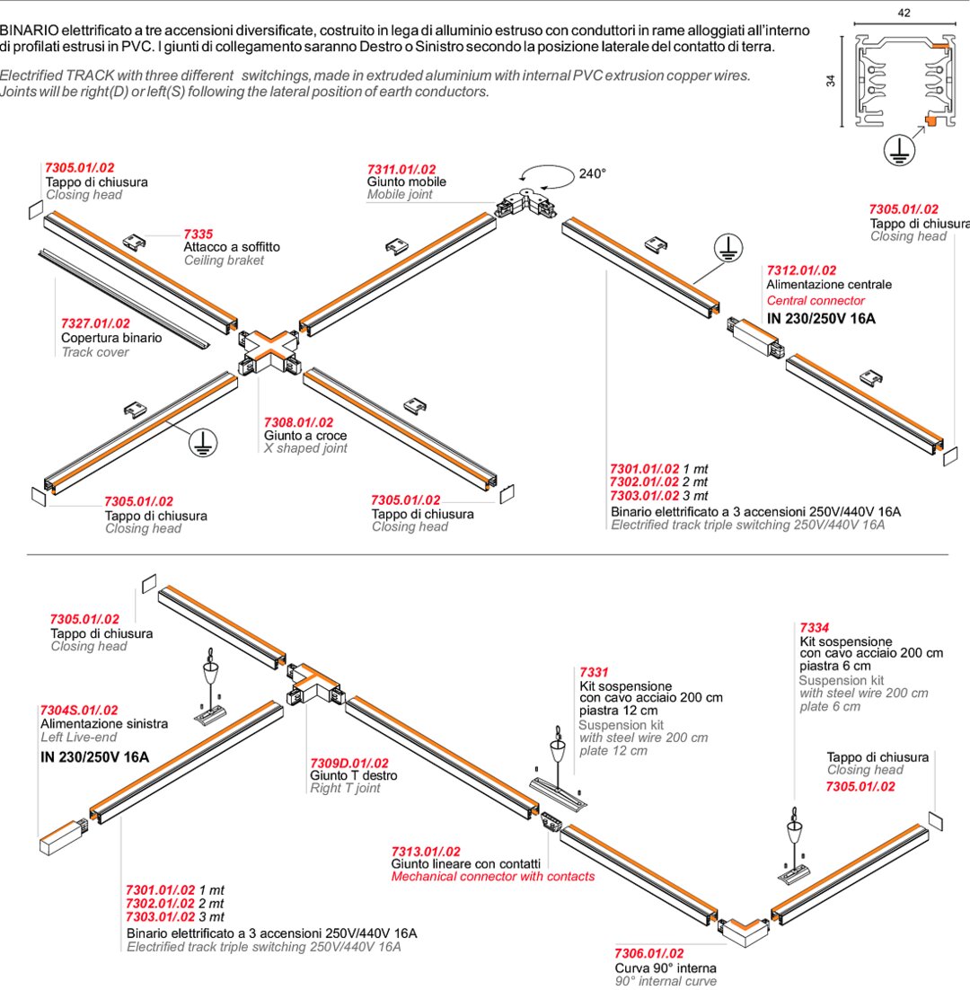Электрифицированный трек с тремя вариантами зажигания для потолочного, настенного и подвесного применения. Трехфазная система треков с сетевым напряжением является наиболее универсальной и простой в установке. Предлагаемая в новом варианте квадратного сечения, она позволяет разделить подключенные лампы на три независимые цепи и, таким образом, иметь три различных зажигания. Это позволяет управлять различными сценариями освещения в помещении окружающая среда. Для работы не требуются балласты, которые содержатся в адаптерах светильников. Все светильники, работающие от сетевого напряжения, могут быть установлены и на треке.