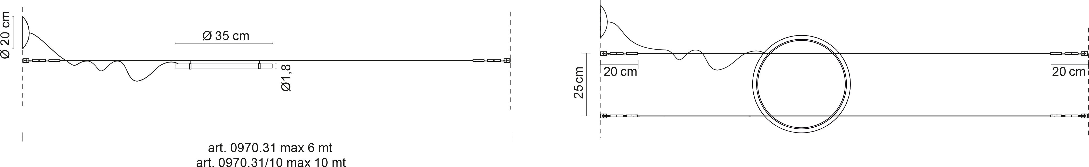 По желанию заказчика композиции, предусматривающие соединение нескольких корпусов с подводящими кабелями, идущими от светильника к светильнику, могут поставляться также для светильников диаметром 50, 70, 100, 150, 200 и 300 сантиметров.